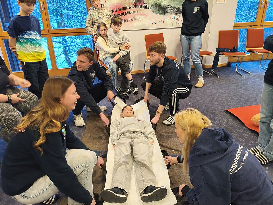 Ein Wochenende voller Spiel und Spaß verlebten sechs Kinder im Alter von 10 bis 13 Jahren mit sieben Gruppen-leiter*innen des Jugendrotkreuzes (JRK) Reinbek im Jugendgäste-haus des Kreisjugendrings (KJR) in Lütjensee.